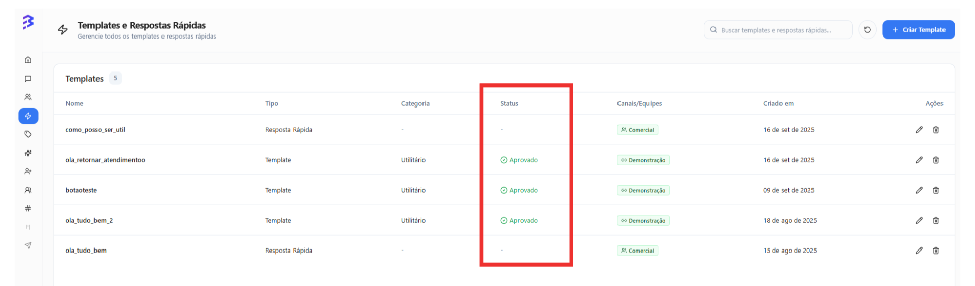 • Depois disso, o template estará disponível para uso imediato em suas conversas.
