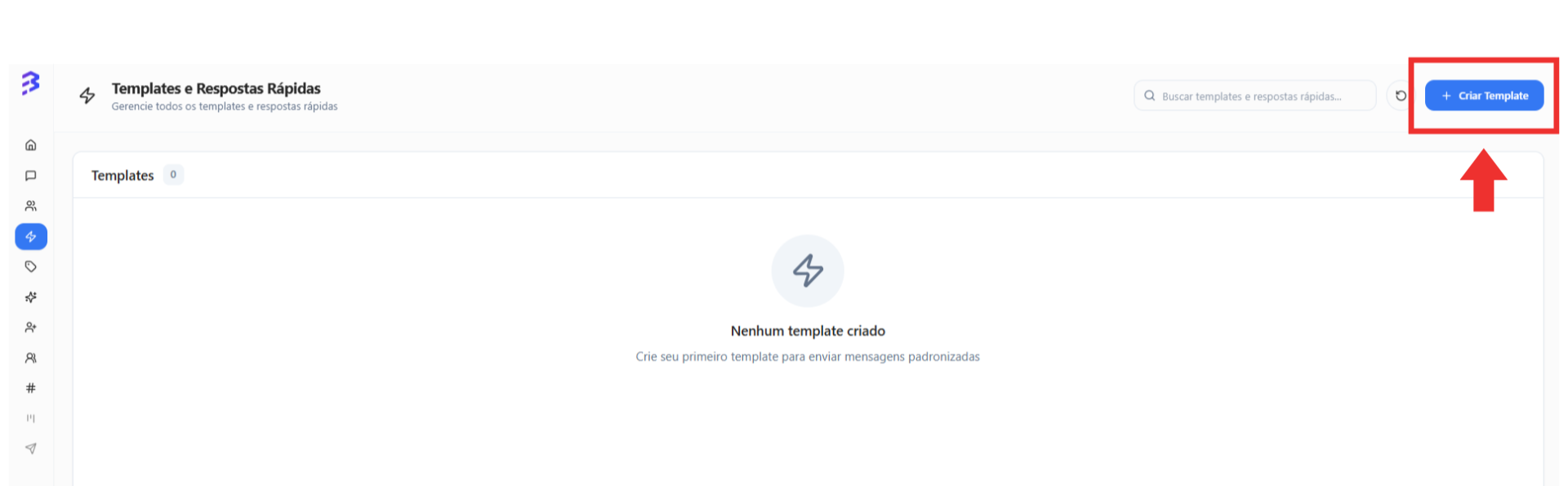 • Ao ser direcionado para a tela de templates, você verá a lista de modelos já criados ou uma tela vazia, caso ainda não tenha nenhum.