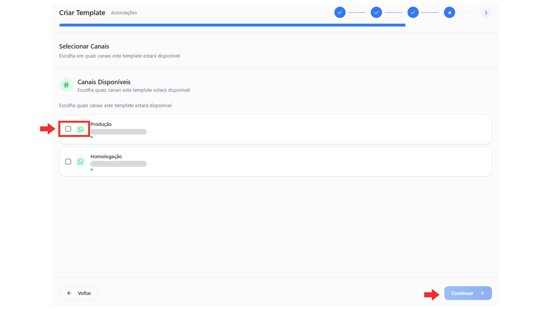 Selecione os números de WhatsApp nos quais deseja que este template fique disponível.