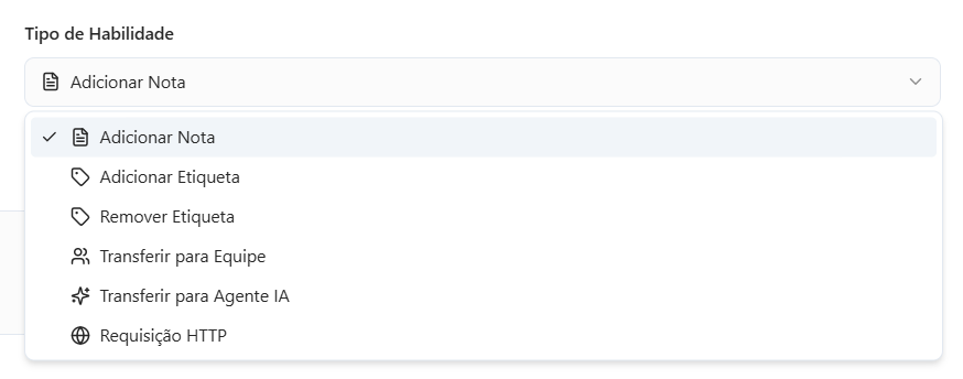 • Transferir para Agente IA → encaminha para outro agente de IA.