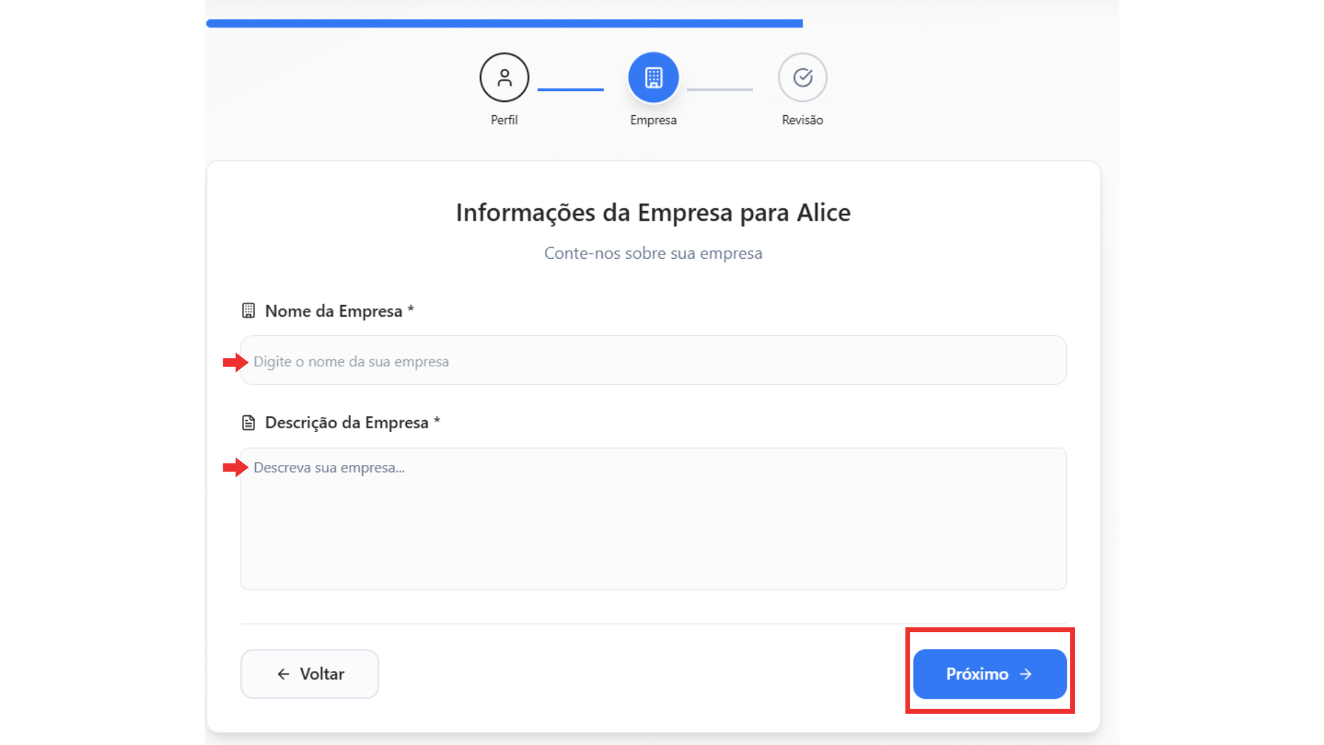 • Digite o nome da sua empresa.