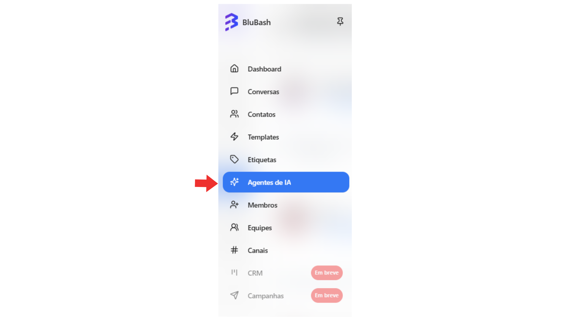 • No menu lateral, clique em Agentes de IA.